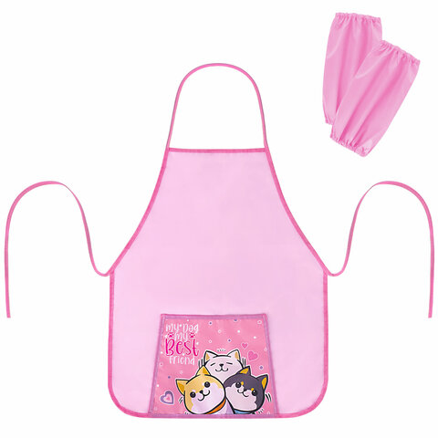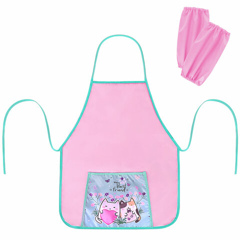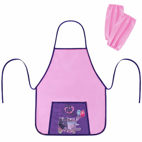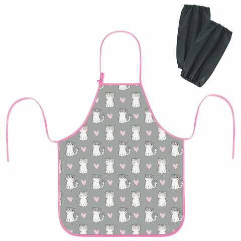 Накидка фартук с нарукавниками для труда BRAUBERG KIDS, 2 кармана, 46x54 см, "Kittens", 272451