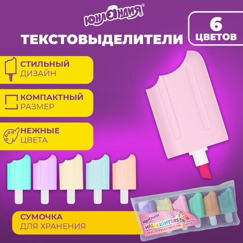 Набор текстовыделителей 6 ПАСТЕЛЬНЫХ ЦВЕТОВ, ЮНЛАНДИЯ "СЛАДКИЕ ИСТОРИИ", линия 1-5 мм, 152511