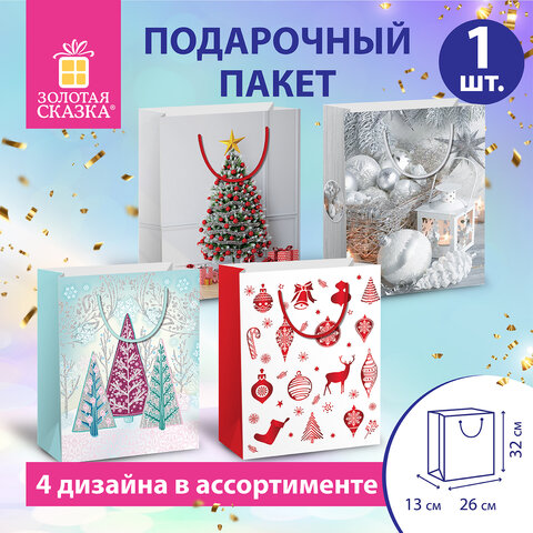 Пакет подарочный (1 штука) новогодний 26x13x32 см, "Collection Large", ассорти, ЗОЛОТАЯ СКАЗКА, 591953