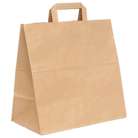 Крафт пакет бумажный 32х20х37 см, плоские ручки, плотность 70 г/м2, 606872
