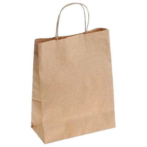 Крафт пакет бумажный 26х15х35 см, крученые ручки, плотность 70 г/м2, 606871