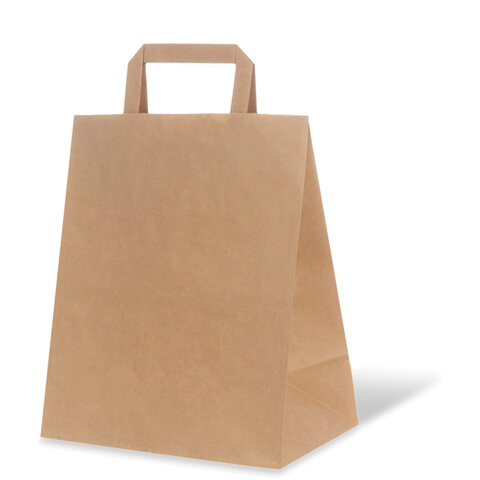 Крафт пакет бумажный 24х14х28 см, плоские ручки, плотность 70 г/м2, 606870