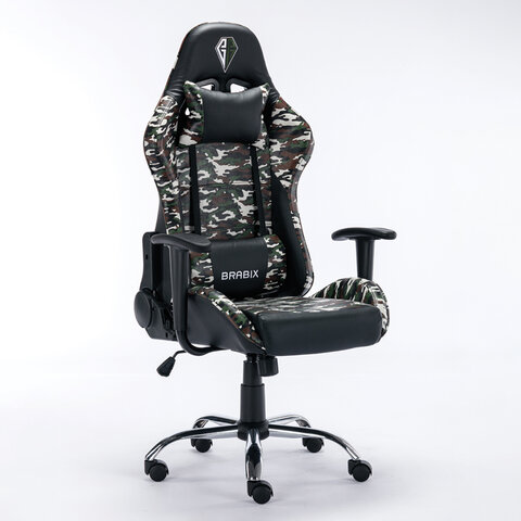 Кресло компьютерное BRABIX "Military GM-140", две подушки, экокожа, черное с рисунком милитари, 532802