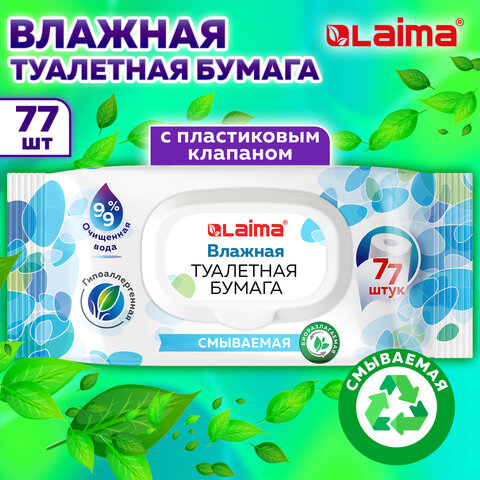 Бумага туалетная влажная 77 шт., БИОРАЗЛАГАЕМАЯ, смываемая, с пластиковым клапаном, LAIMA, 115224