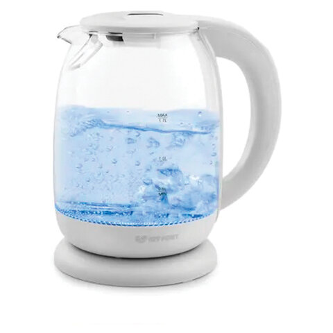 Чайник POLARIS PWK 1715 CGL, 1,7 л, 1850-2200 Вт, закрытый нагревательный элемент, стекло, белый, 54125, PWK 1715 CGL w
