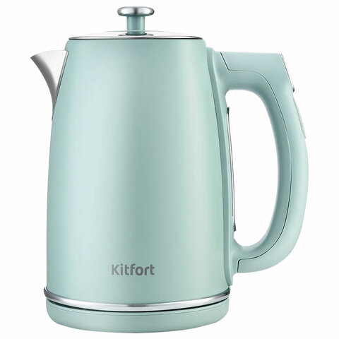 Чайник KITFORT КТ-6120-1, 1,7 л, 2200 Вт, закрытый нагревательный элемент, LED-дисплей, ТЕРМОРЕГУЛЯТОР, сталь, мятный