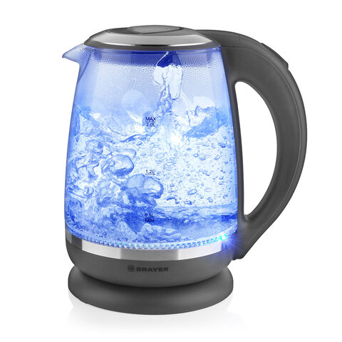 Чайник BRAYER BR1044, 2 л, 2200 Вт, закрытый нагревательный элемент, стекло, серый