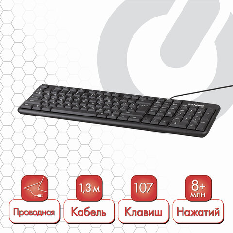 Клавиатура проводная SONNEN KB-8136, USB, 107 клавиш, черная, 512651
