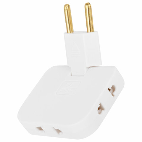 Сетевой тройник ПОВОРОТНЫЙ, 3 розетки, без заземления, без шторок, белый, УТ000038668