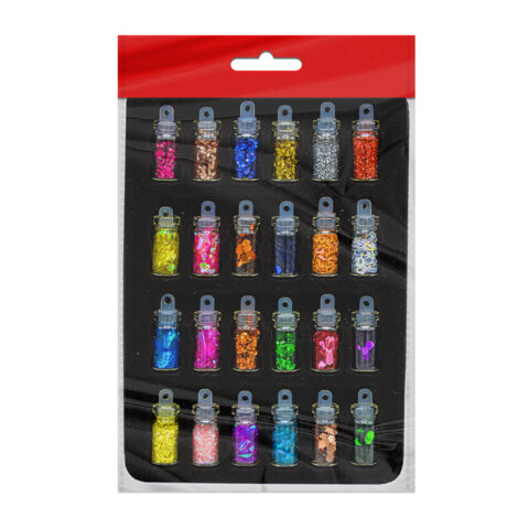 Блестки для декора НАБОР 24 вида по 2 грамма, в стеклянных тубах, ОСТРОВ СОКРОВИЩ, 665680