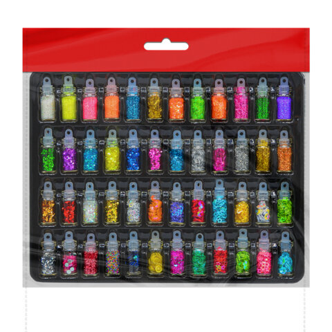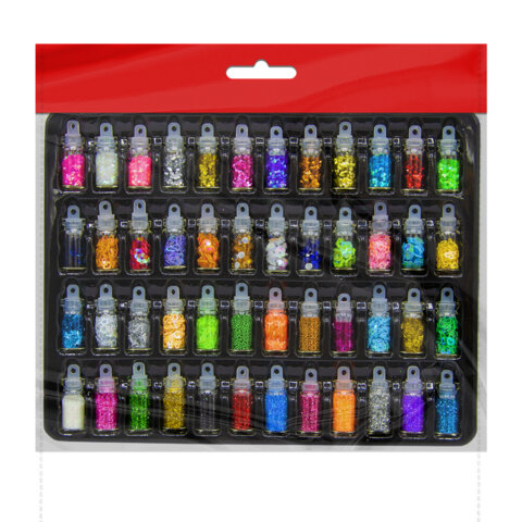 Блестки для декора НАБОР 48 видов по 2 грамма, в стеклянных тубах ОСТРОВ СОКРОВИЩ, 665681