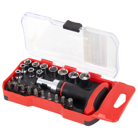 Набор бит и торцевых головок с трещоткой 1/4", 27 предметов, пластиковый бокс, ГРАНДМАСТЕР, 671327