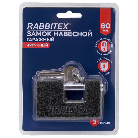Замок навесной чугунный 80 мм "Гаражный" с полимерным покрытием, 3 ключа, RABBITEX (РАББИТЕКС), 671302