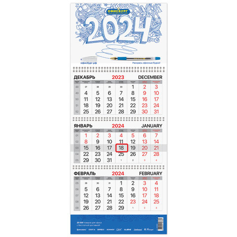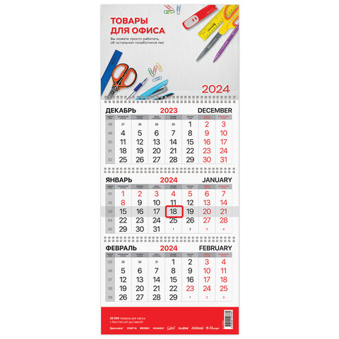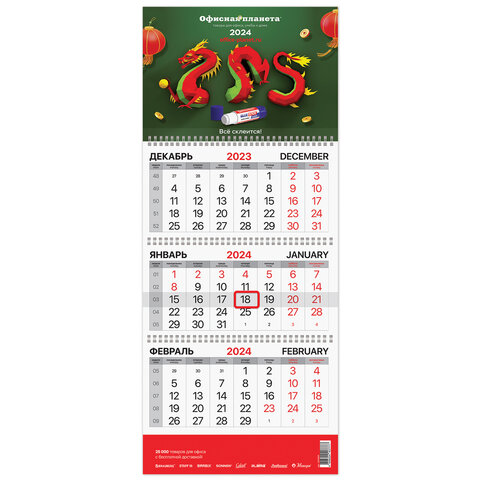 Календарь квартальный на 2024 г., корпоративный базовый, дилерский, ОФИСНАЯ ПЛАНЕТА, 505964