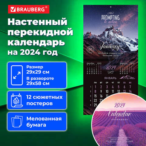 Календарь настенный перекидной на 2024 г., BRAUBERG, 12 листов, 29х29 см, "Удивительные пейзажи", 115316