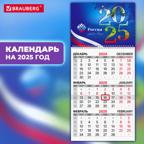 Календарь квартальный на 2025 г., 1 блок, 1 гребень, бегунок, мелованная бумага, BRAUBERG, "Офис", 116126