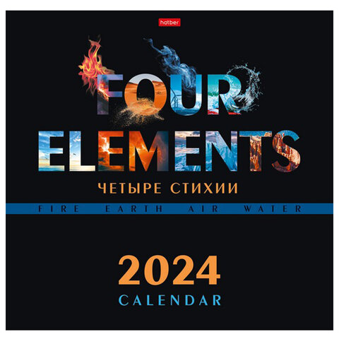 Календарь настенный перекидной на 2024 г., 6 л., 30х30 см, Эконом, "Четыре стихии", HATBER, 6Кнп4_29798