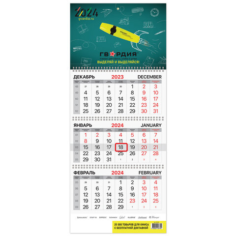 Календарь квартальный на 2024 г., корпоративный базовый, дилерский, ГВАРДИЯ, 505966