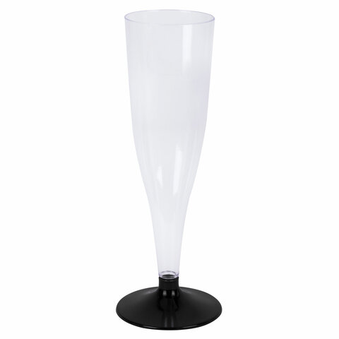Бокал одноразовый 150 мл для шампанского "Флюте" пластиковый, черная низкая ножка, ВЗЛП, 1009П/Ч