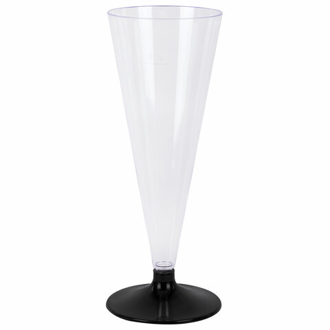 Бокал одноразовый 150 мл для шампанского "Конус" пластиковый, черная низкая ножка, ВЗЛП, 1010П/Ч
