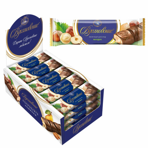 Шоколадный батончик БАБАЕВСКИЙ "Вдохновение", молочный с фундуком, 40 г, в шоубоксе, ББ23412
