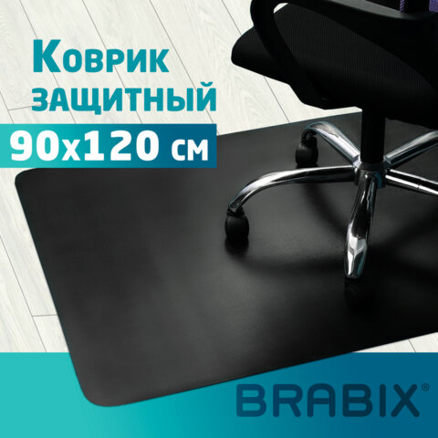 Коврик защитный напольный BRABIX, полипропилен, 90х120 см, черный, толщина 1,5 мм, 608710, 1215091206