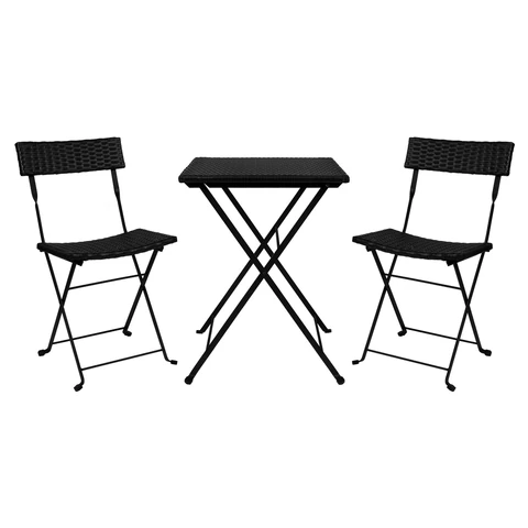 Комплект складной мебели (стол и 2 стула) NOSTRESS (НОСТРЕСС) "Wicker FS-020", металл черный, искусственный ротанг, 680061