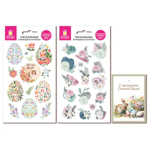 Переводные картинки для яиц, НАБОР 2 листа 20x11 см, "Светлый звон", открытка, ЗОЛОТАЯ СКАЗКА, 592653