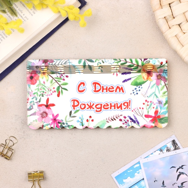 Купюрница "С днем Рождения. №2", плоская, печать, 18,5х9,5х0,8 см