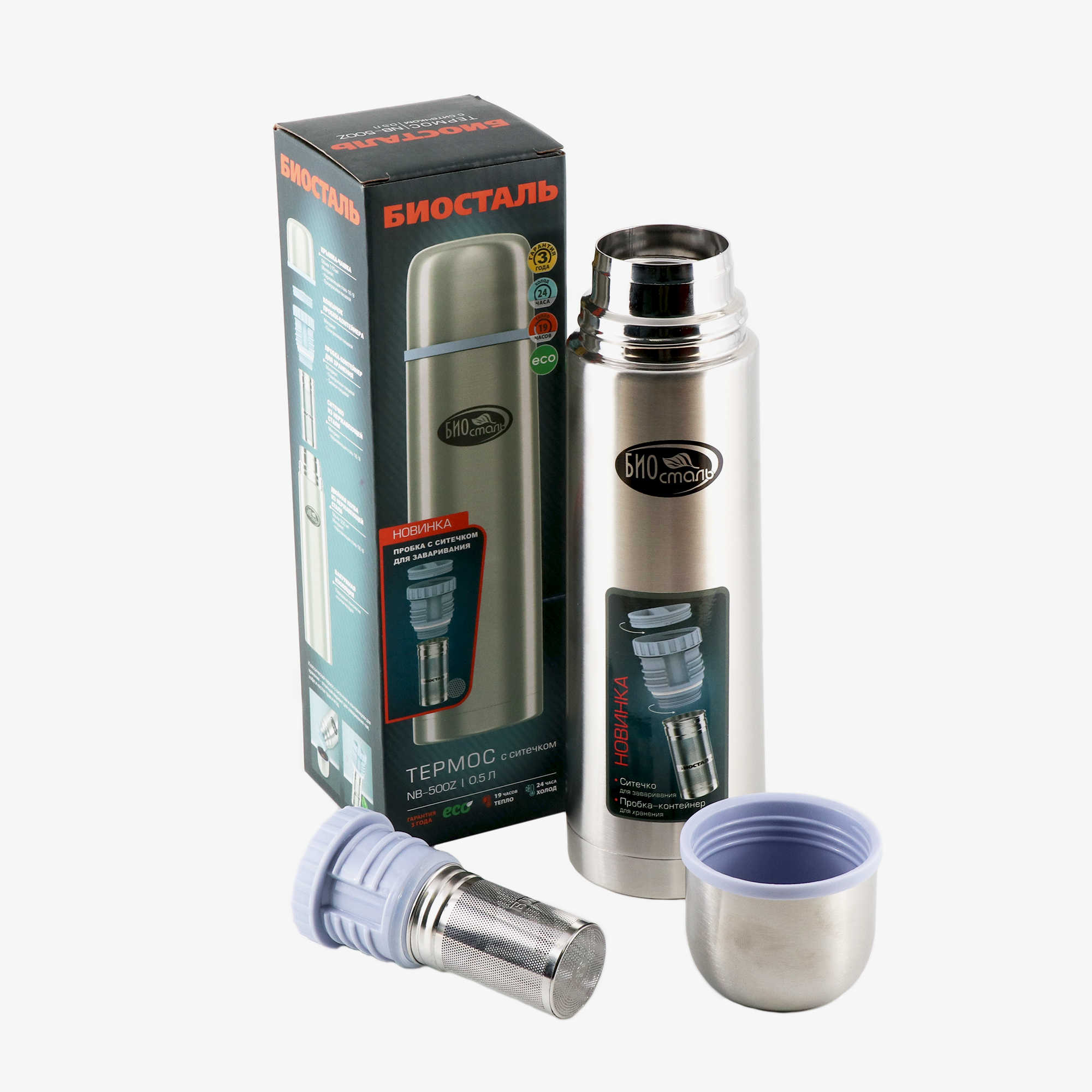 Термос "Биосталь" с узкой горловиной и пробкой с ситечком, 0,5 л /12/