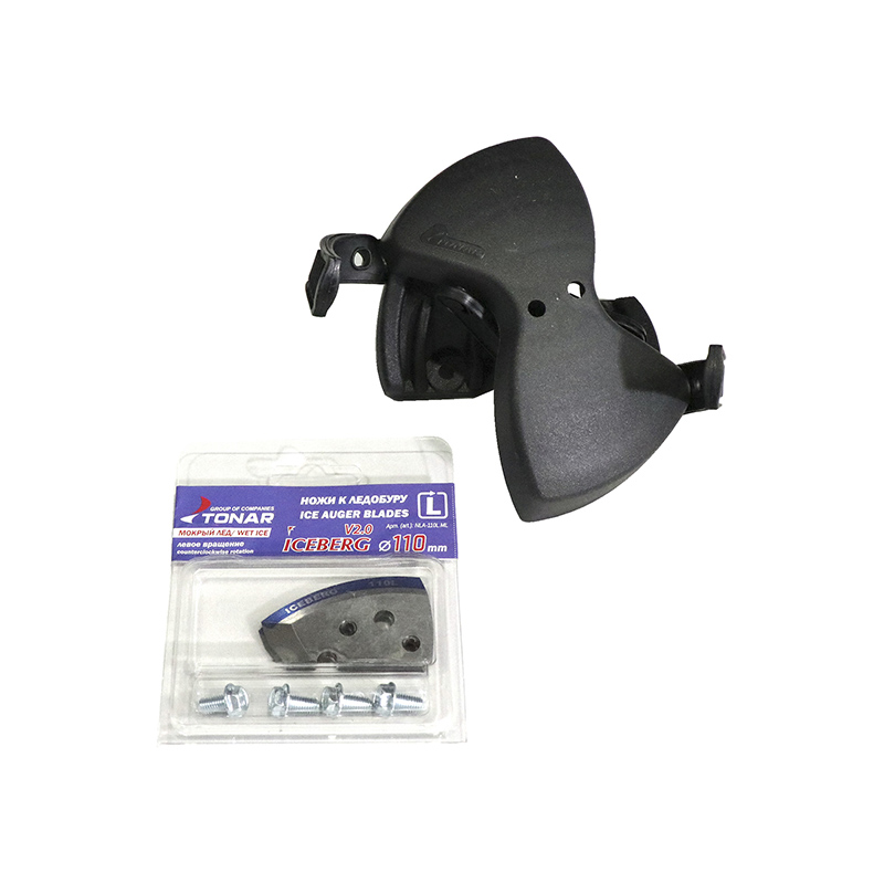 Голова режущая ледобура ICEBERG-110(L) v2.0/v3.0 (левое вращ.) в сборе (радиусные ножи + защ. футляр