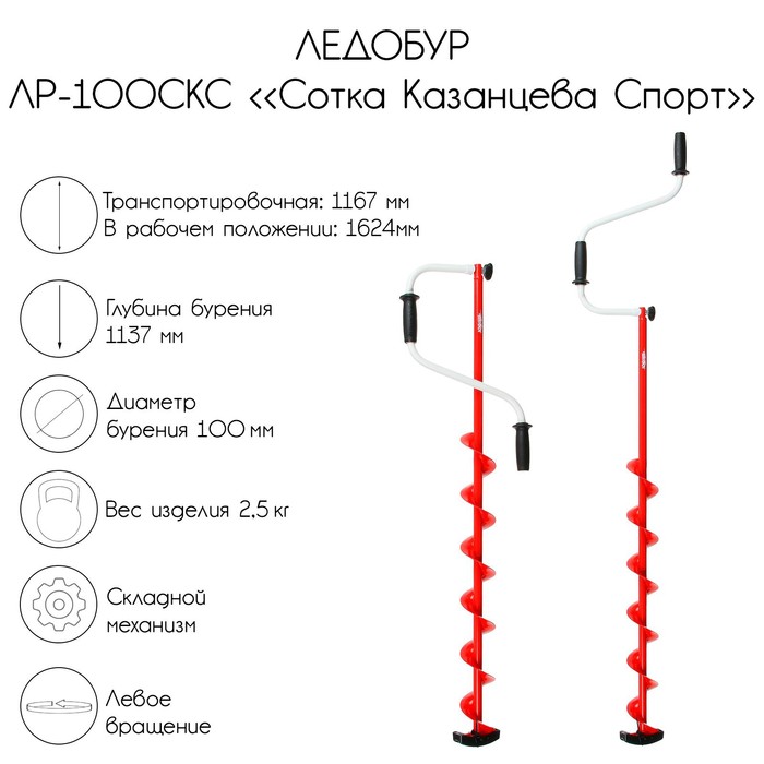 Ледобур ЛР-100СКС "Сотка Казанцева Спорт", левое вращение, LS-100L1.KS