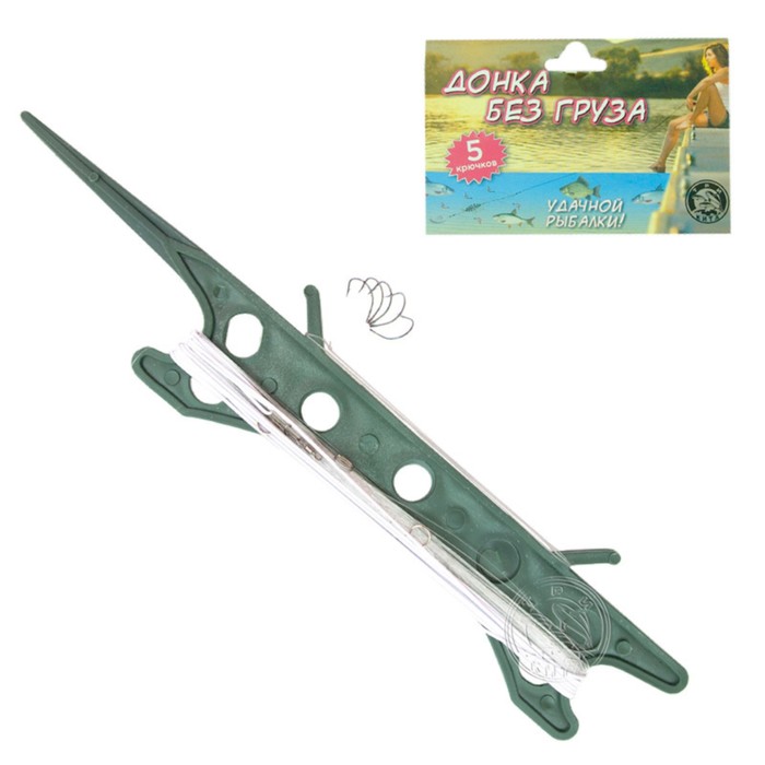 Снасть донка, на двухрядном мотовиле, без груза, 5 крючков