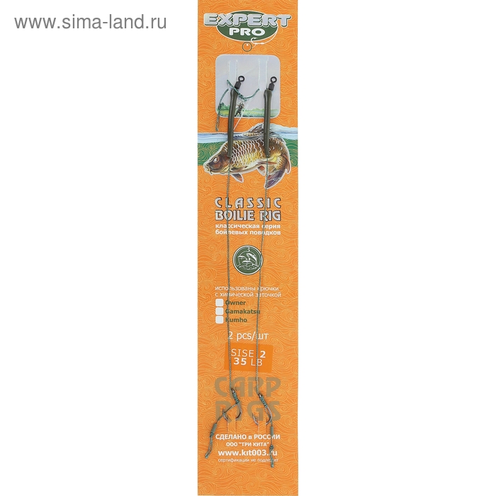 Поводок карповый для бойлов Classic, тест 15.8 кг, крючок Kumho №2, 2 шт.