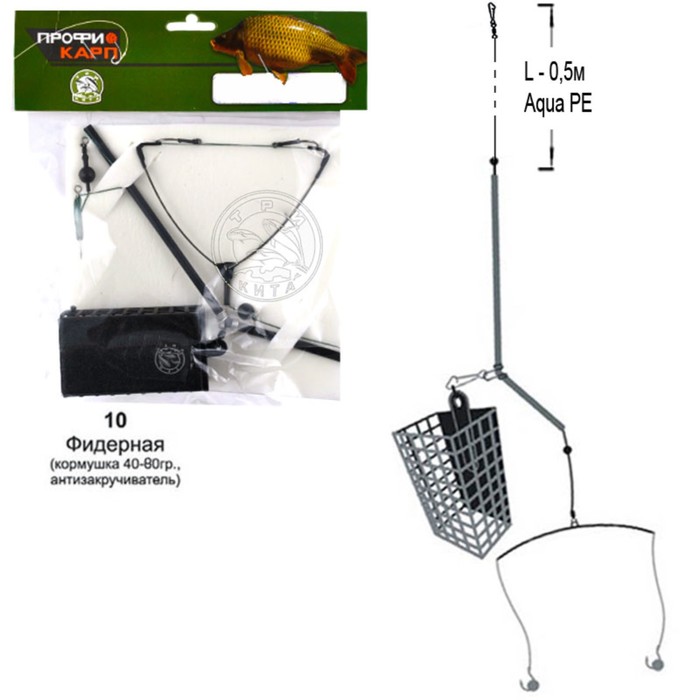 Снасть фидерная 10, кормушка, антизакручиватель, 2 крючка №2, 60 г