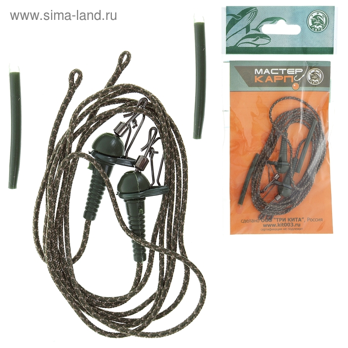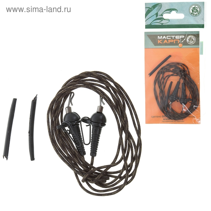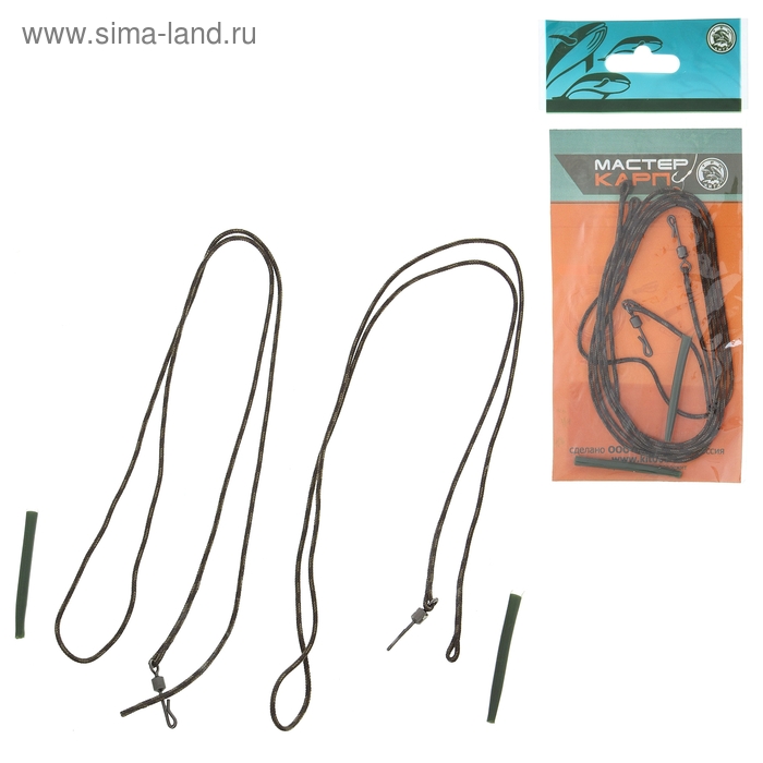 Лидкор с петлями для карповых монтажей с быстросъёмом + хвост, 70 см, зелёный, 2 шт.