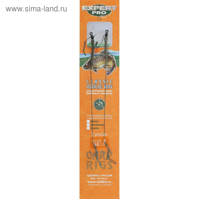 Поводок карповый для бойлов Classic, тест 13.6 кг, крючок Kumho №4, 2 шт.