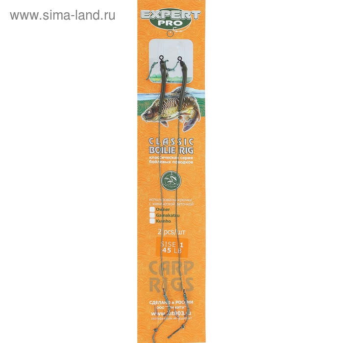 Поводок карповый для бойлов Classic, тест 20.4 кг, крючок Kumho №1, 2 шт.