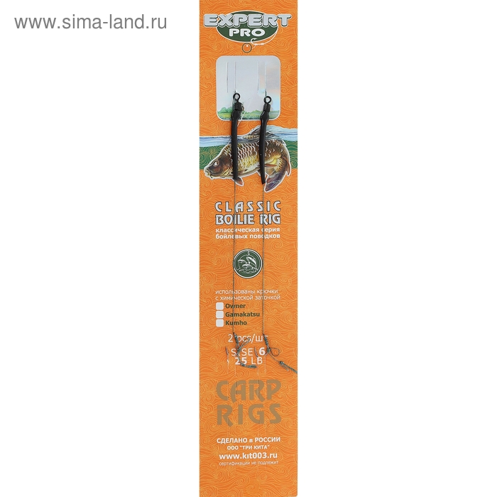 Поводок карповый для бойлов Classic, тест 11.3 кг, крючок Kumho №6, 2 шт.