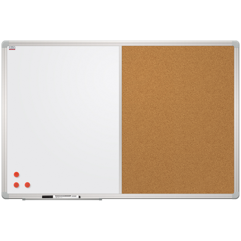Доска магнитно-маркерная/пробковая 2х3 "Office", 60*90см, алюминиевая рамка, полочка, маркер, 3 магнита
