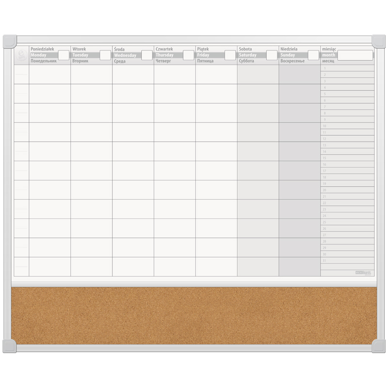 Доска-планинг НА НЕДЕЛЮ магнитно-марк./пробковая 2х3 "Eco", 50*60см, алюм. рамка, маркер, 3 магнита