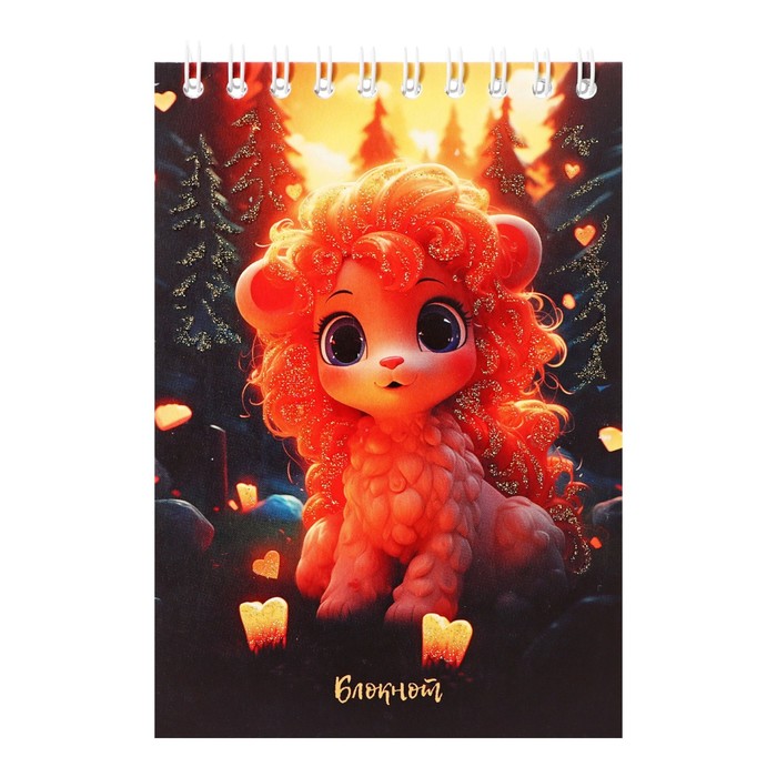Блокнот А6 "Золотоя малышка", 48 листов в клетку, обложка мелованный картон, блестки