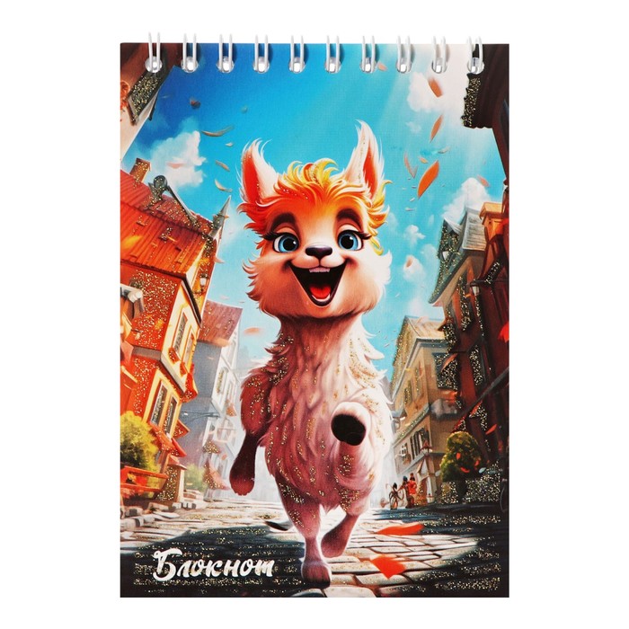 Блокнот А6 "Забавная лама", 48 листов в клетку, обложка мелованный картон, блестки