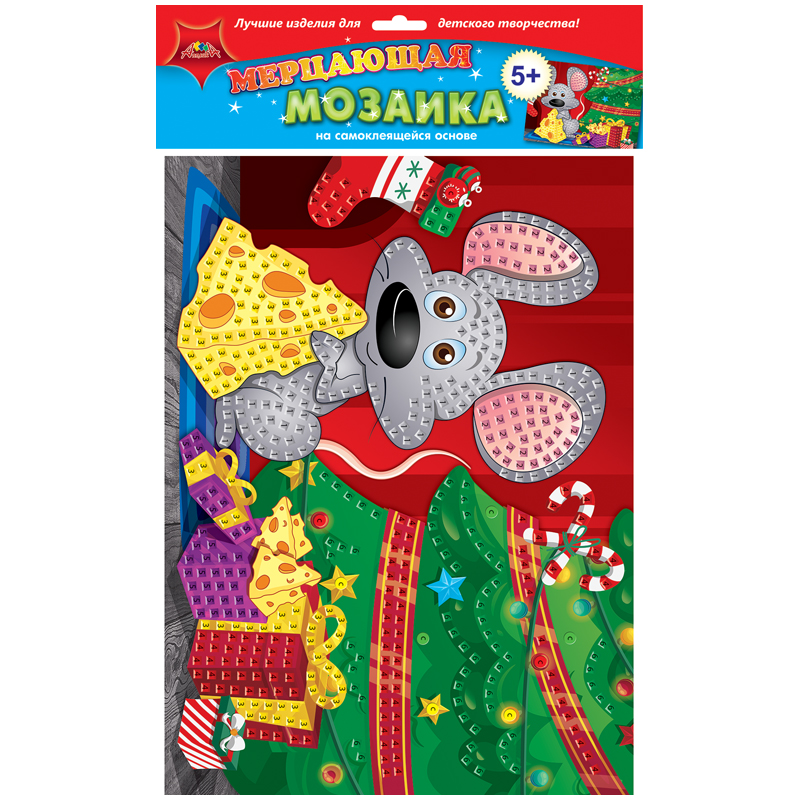 Мозаика мерцающая на самокл. основе Апплика "Подарок для мышонка", 25*35см, из мягкого пластика