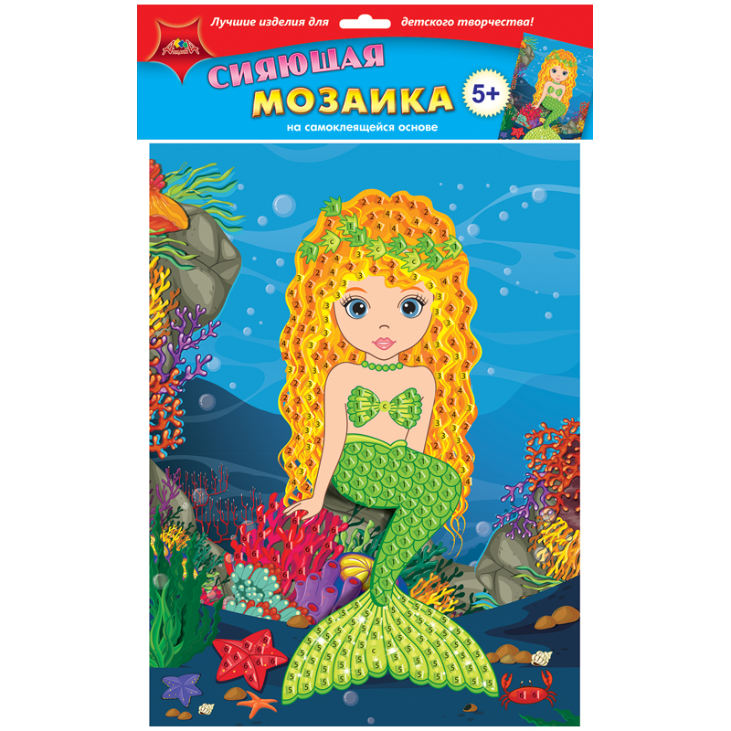 Мозаика сияющая на самоклеящейся основе Апплика "Русалка", 25*35см, из мягкого пластика