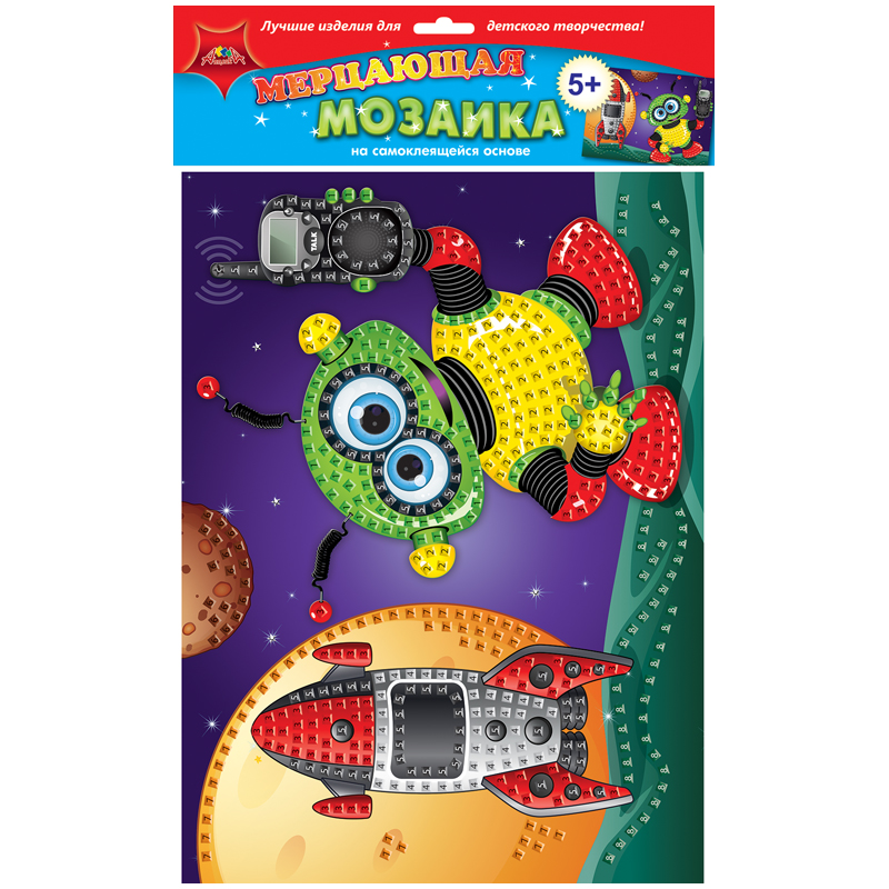Мозаика мерцающая на самоклеящейся основе Апплика "Робот-космонавт", 25*35см, из мягкого пластика