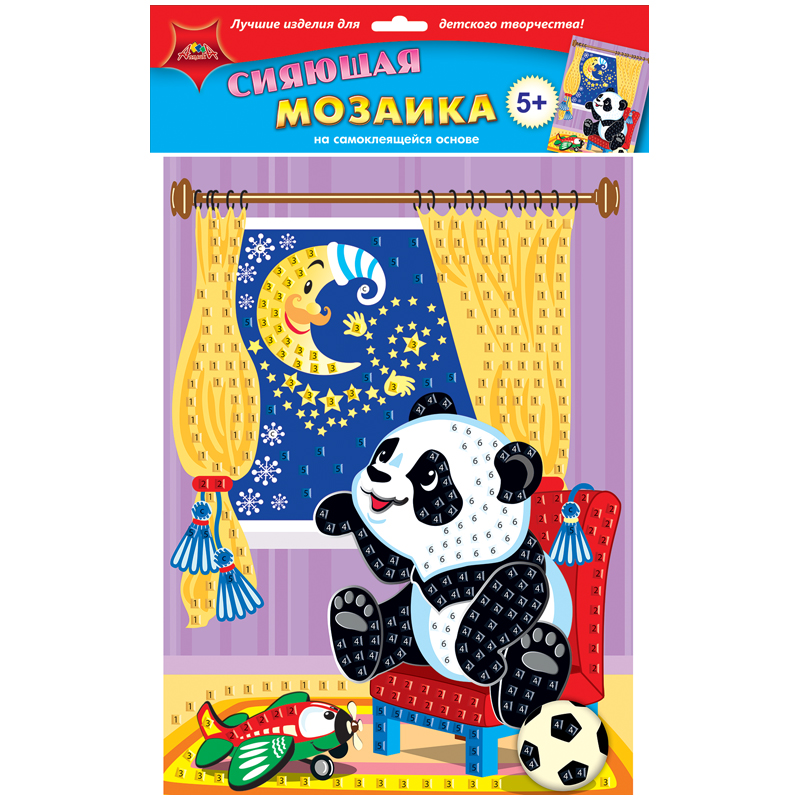 Мозаика сияющая на самоклеящейся основе Апплика "Панда и месяц", 25*35см, из мягкого пластика