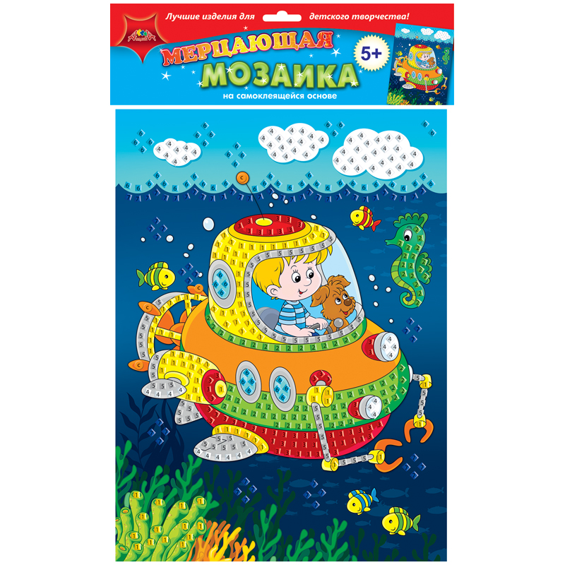 Мозаика мерцающая на самокл. основе Апплика "Подводное путешествие", 25*35см, из мягкого пластика