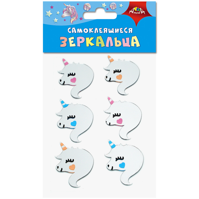 Материал декоративный Апплика "Зеркальца. Единорожки", самоклеящиеся, 6шт.