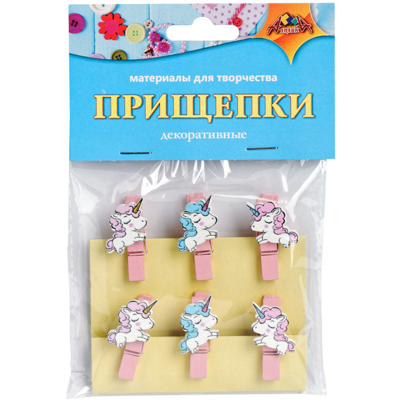 Прищепки декоративные Апплика "Веселые единорожки", 6шт.